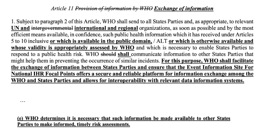 The 307 IHRAs will require Member States are required to supply potential pandemic, personal health information to the WHO, and the WHO has the power to share or withhold any information as it sees fit, see Articles 7 and 11: