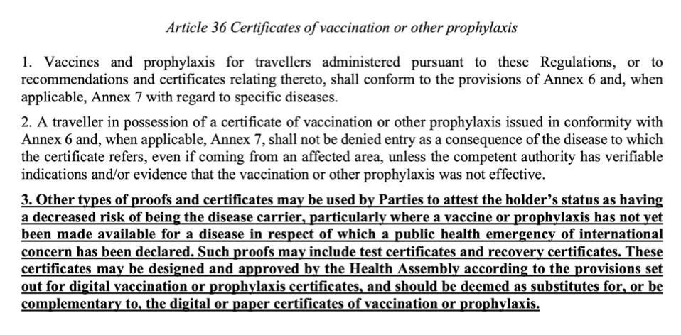 3. The 307 IHRA’s refer to health passports as Digital Passenger Locator Forms, requiring those health passports to detail pathogen test and/or vaccination status, see proposed amendments to Articles 23 and 36: