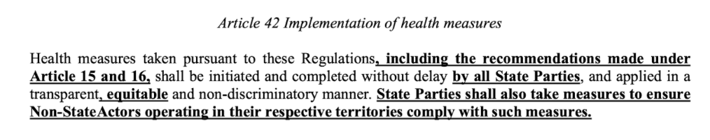 Health recommendations will become legally binding orders per Article 42 of the 307 IHRAs: